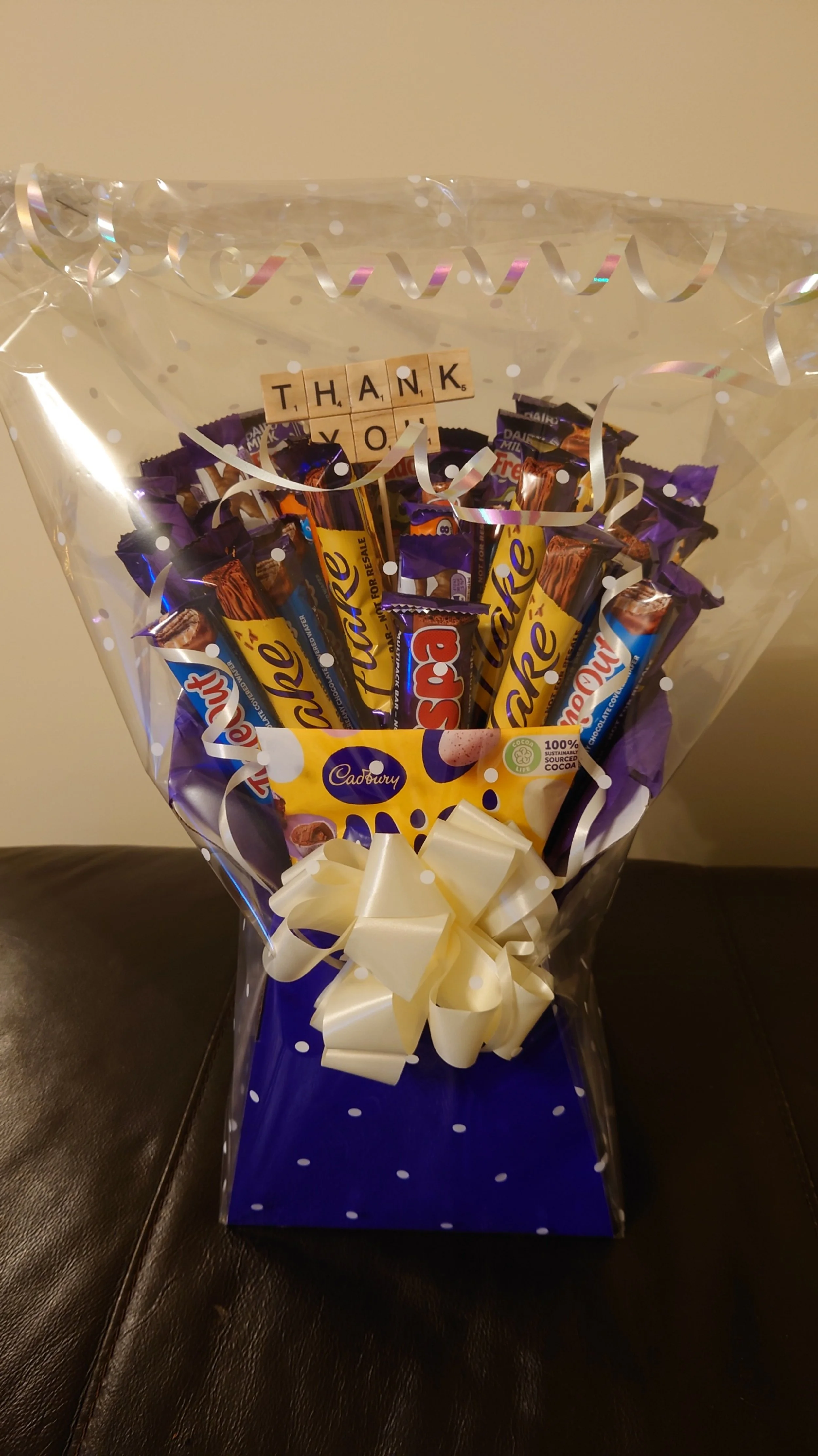 What better gift can you give than a bespoke chocolate hamper. As well as my “standard” hampers, I have also made bespoke styles, which have included alcohol, candles, baby items (a maternity leaving gift). Hampers can also be made for your little ones. Take a look at the “chocolate boxes” page, as well as my Facebook page for ideas.